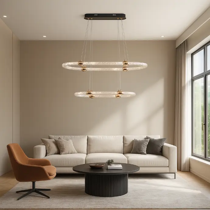 • هيكل معلق عصري: تصميم تعليق أنيق مع كابلات قابلة للضبط لتناسب ارتفاعات الأسقف المختلفة.